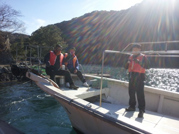 낚시팀은...추운날씨에도 잔잔한 아소만에서 즐겁게 낚시를 하고