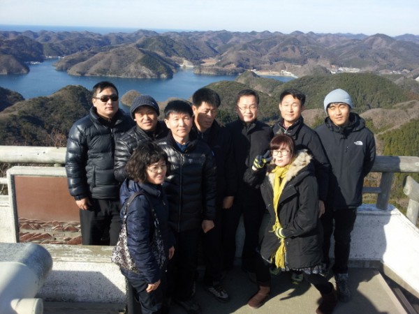 관광팀은...에보시다케에서 아름다운 대마도의 경치를 감상하며 관광을
