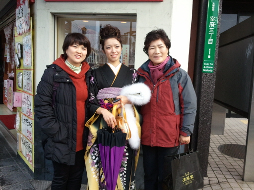성년의 날이라 기모노 입은 언니를 만나서 기념으로 사진 촬영도 하고