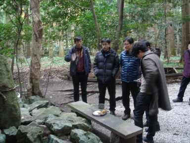 쭉쭉 뻗어있는 스기와 히노끼사이 하얀 자갈길의 신사뒤뜰은 참 편안한 느낌을 준다.