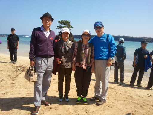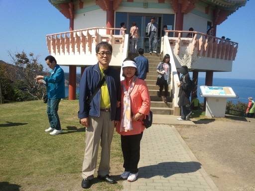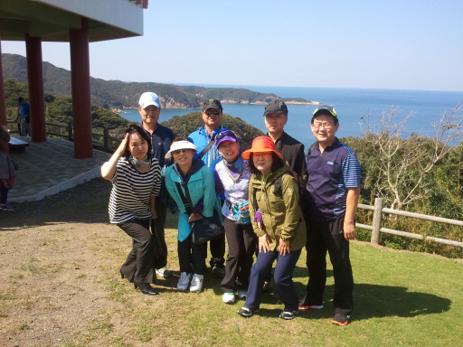 대마도의 맑은 공기를 마시며 아름다운 자연 경관에 만족하며,