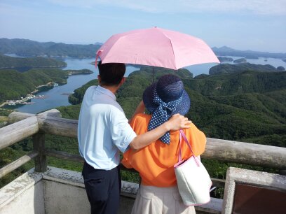 에보시다케 전망대에서 아름다운 아소만의 풍경에 푹~빠져서 한참을 바라보는 우리 부부 선생님들~서로서로 사진도 찍어드리면서 잘 챙겨주는 모습이 너무 좋았습니다^^다른팀하고 잘 겹치지 않아서 관광지도 여유롭게 보고 사진도 여유롭게 찍을수 있어서 아주 좋았죠~^^