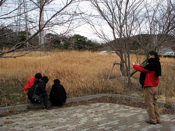 관광도중에 봄기운을 맞아 올라오기 시작한 쑥을 뜯던 우리 선생님...