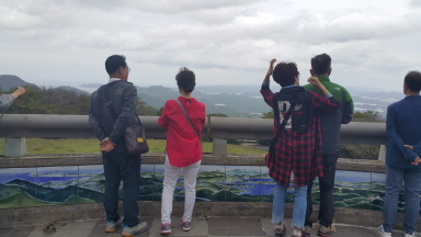 이국이 보이는 전망대는 저멀리 부산이 보이는 듯하고 부부님들은 날씨가 너무 좋으니