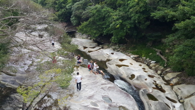화강암바위가 멋진 계곡 아유모도시자연공원애서 모두 발도담그시고 더위도 식혀봅니다