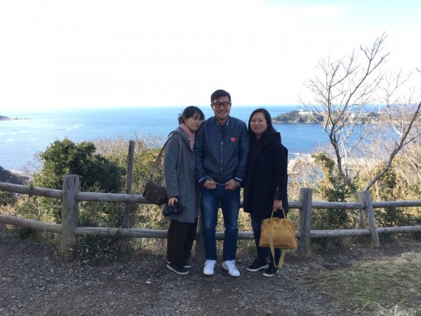 다시 히타카츠항으로 이동합니다. 햇살에 반짝이는 미우다해변을 배경으로 여행을 마무리 하는 사진도 찍어봅니다.