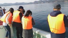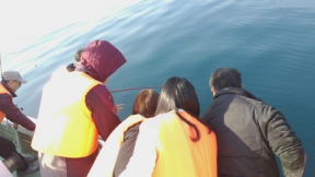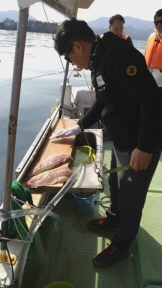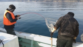 이틀째 낚시를 하면서 대어를 낚았을 때,