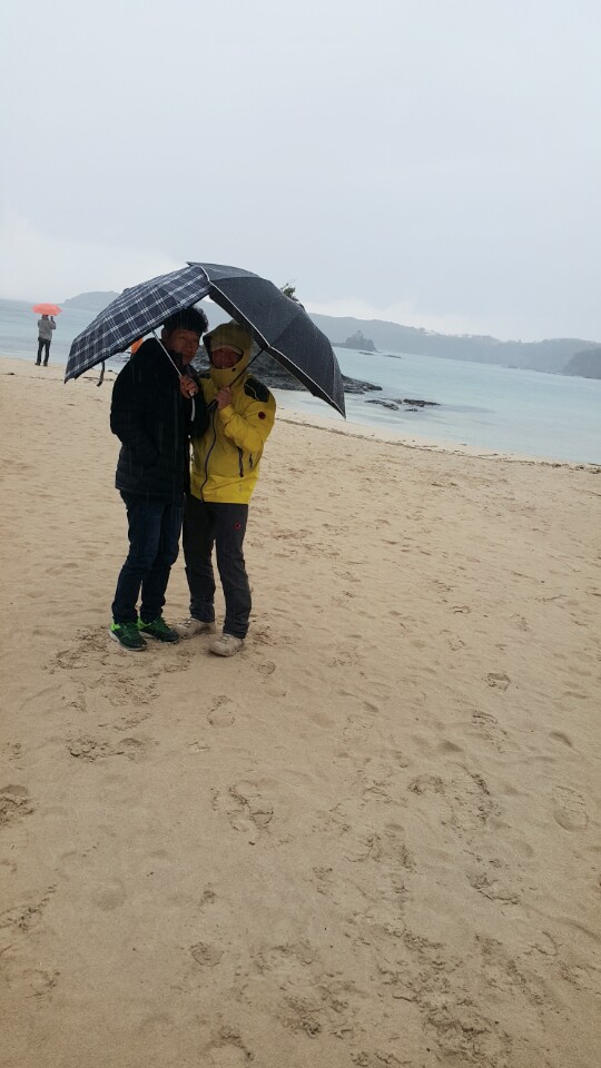 부산을 출발할때 내리던 부슬비로 인해 챙겨온 우산을 쓰고 비내리는 미우다해변을 둘러봅니다.