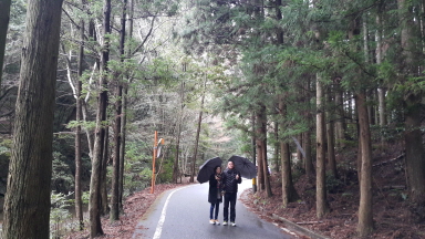 따끈 우동으로 몸을 데우고 편백 히노끼 가득한 국도를 따라 내려갑니다