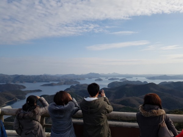 부산 해운대에서 오신 두 부부와 어머님의 팔순을 기념해서 부모님을 모시고 오신 최씨남매와 며느리들.. 그리고 초등학생 아들과 오신 젊은 부부.. 이렇게 17분과 대마도 1박2일 여행입니다.