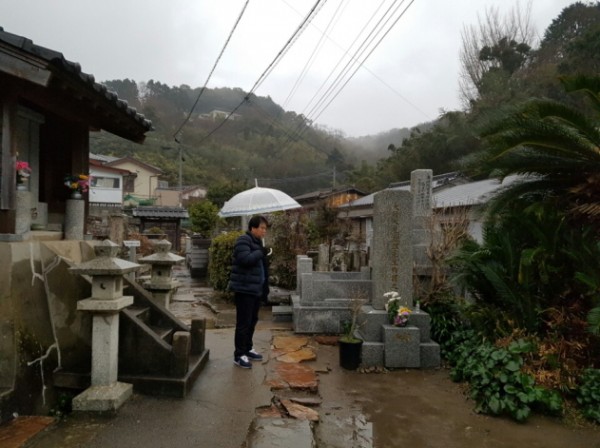 어제와는 또 다른 모습의 아소만과, 멀리 대마도의 명산, 시라다케가 보입니다.