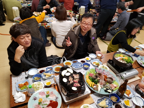 저녁으로 이시야끼 특식에 일본 사케를 곁들이니.. 분위기는 한층더 흥겨워집니다.