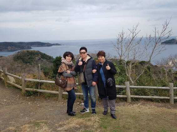 미우다 해변을 배경으로 단체사진부터.. 정갈하게 준비된 스시와 따끈한 우동으로 배를 든든히 하고, 한국전망대를 거쳐 슈시로 갑니다.