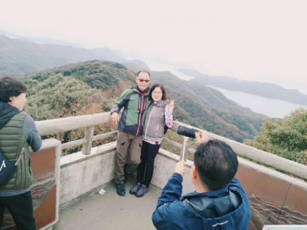 에보시타케 전망대에서 30분넘게 다른 대형버스들과 앞으로갔다가 뒤로갔다가