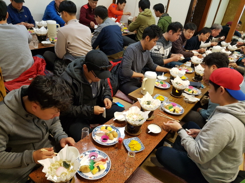 점심식사후에는 낚시팀은 배를 타고 아소만으로.. 온천팀은 느긋하게 온천을 즐깁니다.