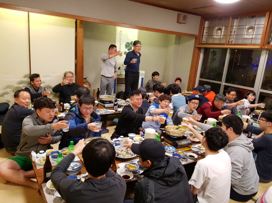 사장님의 선창으로 모두 잔을 높이 듭니다.