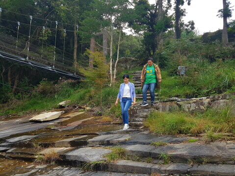 잠시 산책을 하며 맑은 공기를 마음껏 들이마십니다.