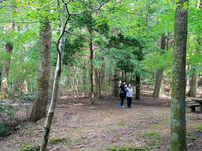 같이 모여 이야기할 장소가 필요하다는 대표자의 요구로 숲길 산책 후 잔디가 있는 광장에서 한 시간동안 모임을 합니다.