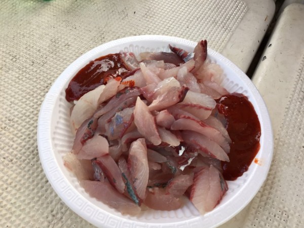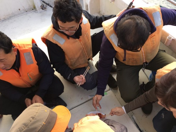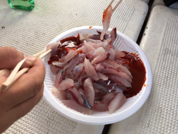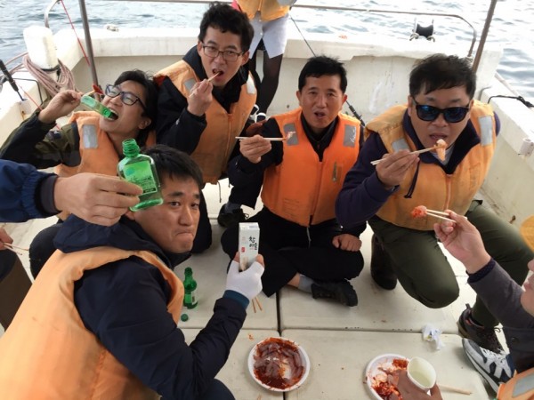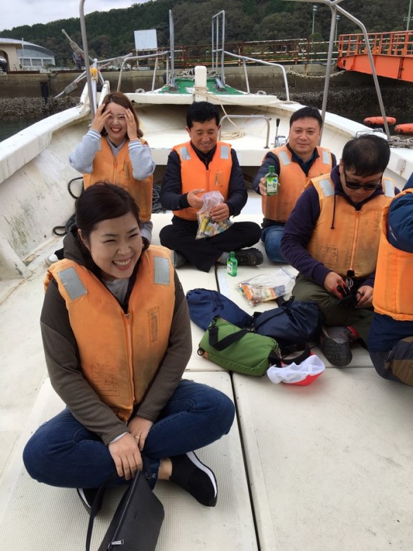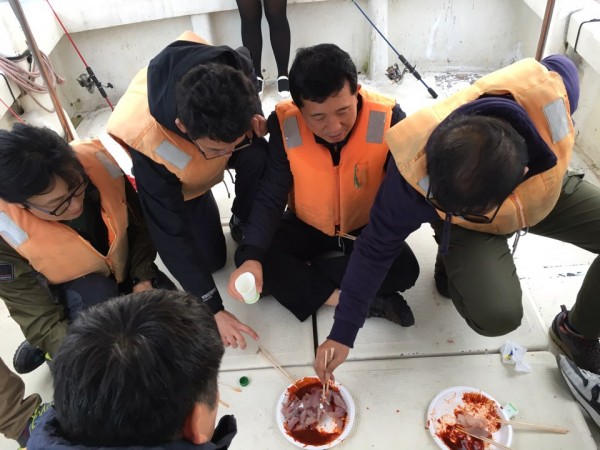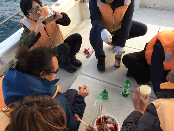배 위에서 선장님이 직접 떠 주신 회도 먹고 들뜬 마음으로 하선하였습니다.