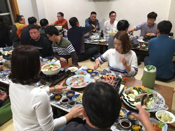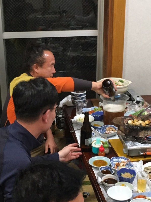 그리곤 기다리던 저녁식사 시간입니다. 이시야키 특식(과 폭탄주^^)으로 분위기는