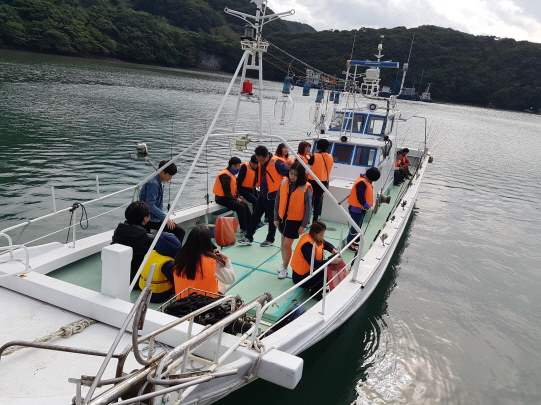 낚시와 관광으로 나뉘어, 낚시팀은 배를 타고 아소만으로 떠나고 관광팀은 와타즈미 신사로 갑니다.