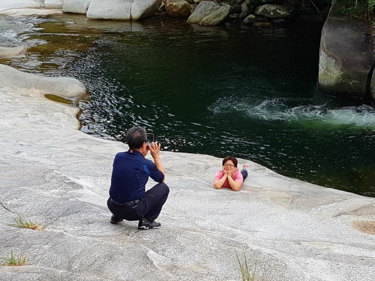 넓게 펼쳐진 화강암계곡에서 모두 동심으로 돌아가, 다양한 포즈로 사진을 찍으며 추억을 만듭니다.