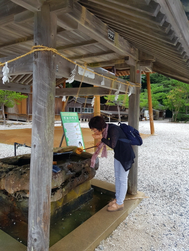 진무천황의 탄생신화에 등장하는 토요타마히메의 묘와 신사의 배전옆에 뿌리를 길게 드러내고 서있는 오래된 해송이 신비로움을 자아냅니다.