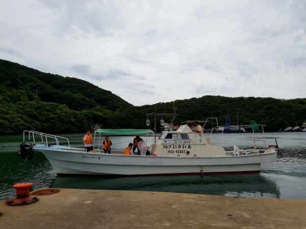 아름다운 미우다 해변을 카메라에 담고, 니이하마로 이동하여 낚시를 신청한 가족을 낚싯배에 태워드립니다.
