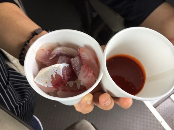 종이컵에 직접 잡으신 돔 회와 초고추장도 몰래 가져와주시는 센스!! ㅎㅎ잘먹었습니다