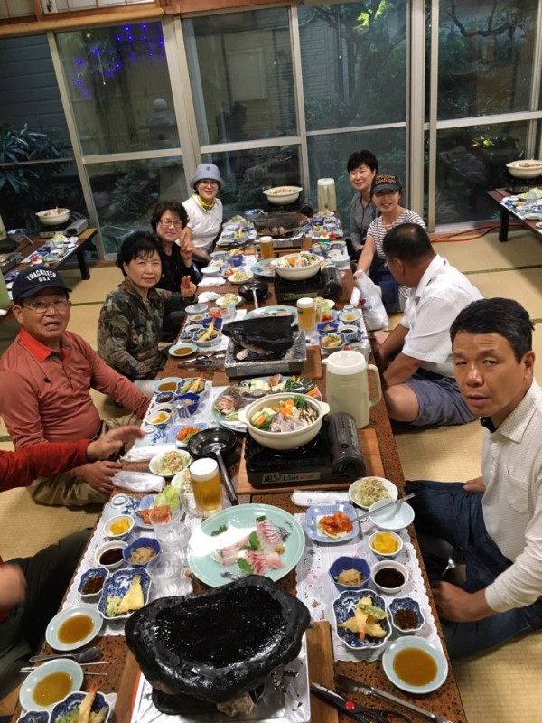 저녁을 먹으러 가는 발걸음도 가벼웠습니다. 맛있는 이시야키와 해산물 바베큐를 먹으며