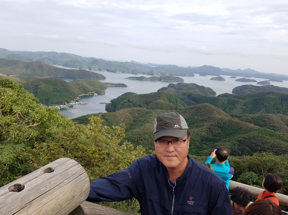 해무속에 떠 있는 아소만과 태고의 원시림처럼 울창한 나무숲에 감탄하며.. 추억을 남기느라 연신 사진을 찍습니다.
