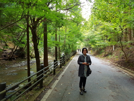 와타즈미신사의 편백숲에서는 천천히 산책을 하고 커피 한 잔의 여유도 가져봅니다.