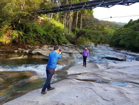 구름다리를 건너 눈 앞에 펼쳐지는 거대한 화강암계곡의 모습에 감탄하며, 산책로도 거닐고 계곡을 배경으로 사진도 찍으며 즐거운 시간을 가집니다.