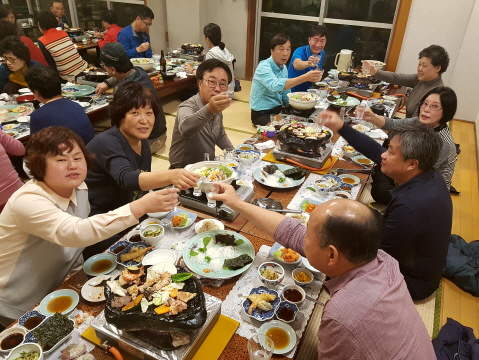 술잔이 오고가며 화기애애한 분위기로 밤은 깊어갑니다.