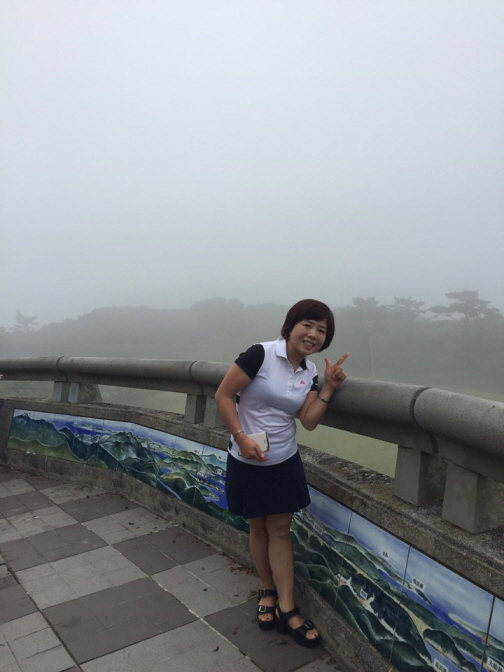 편백나무가 가득한 카미자카 전망대에 오르자 안개가 그윽하게 껴서