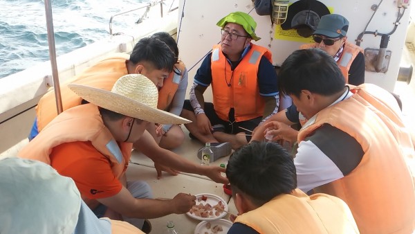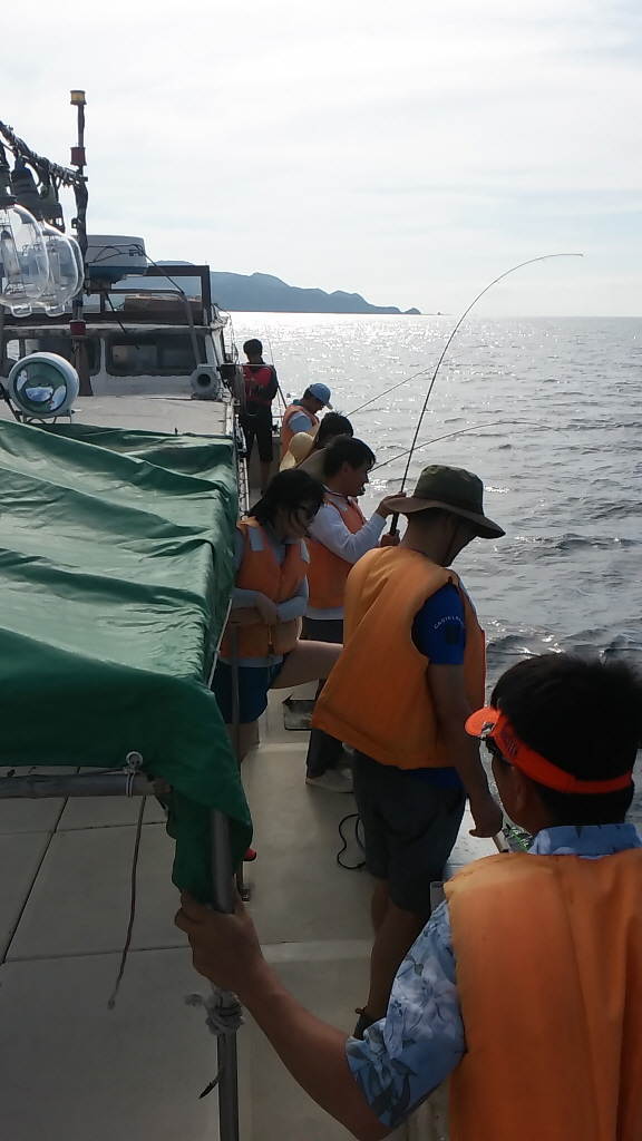선상에서의 회와 소주는 낚시의 재미를 두배로 만들어주었습니다.
