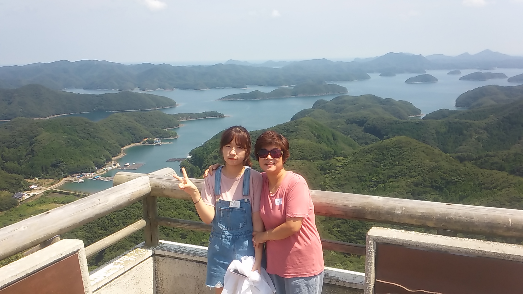 에보시타케 전망대에 올라 탁트인 아소만의 절경에