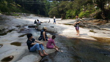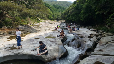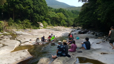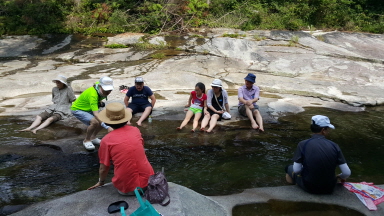 시원한 계곡물에 발도담그시고 더위를 식힙니다
