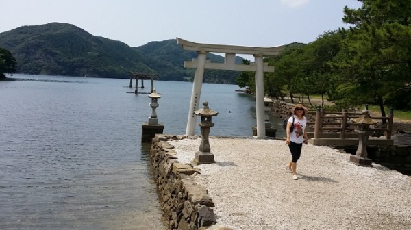 에보시다케 전망대에서 바라보는 아소만의 절경에 환호하고.. 해궁신사인 와타즈미신사의 숲길을 지나 정면에서 바다로 이어지는 도리이는 신화의 마을답게 신비로움을 자아냅니다.