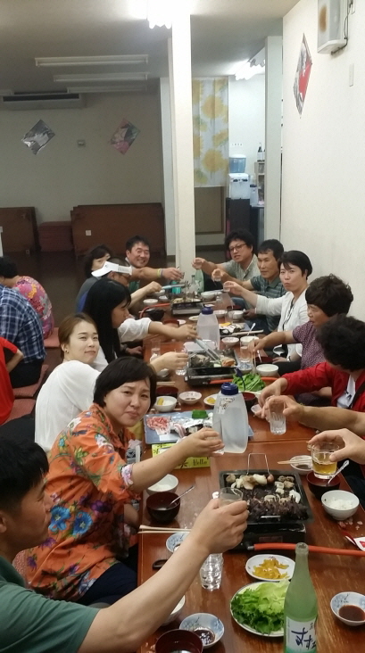 온천욕으로 피로를 풀고 저녁식사는 바비큐입니다.