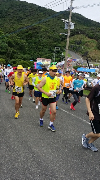 의성마라톤클럽, 천안에서 칠순 장모님을 모시고 오신 킥복싱 관장님 부부, 전국에서 가장 많은 회원을 가진 런너클럽, 송마클럽 등, 저와 함께하는 39분과 반갑게 인사를 나누고 이즈하라항으로 출발합니다.