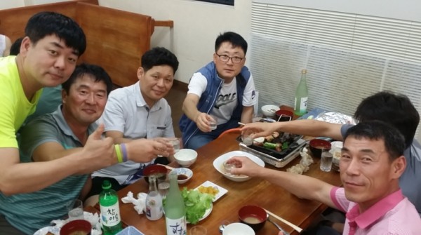 각 팀의 대표들이 나와서 건배도 하시고 모두가 하나로 친목을 다지는 시간입니다.
