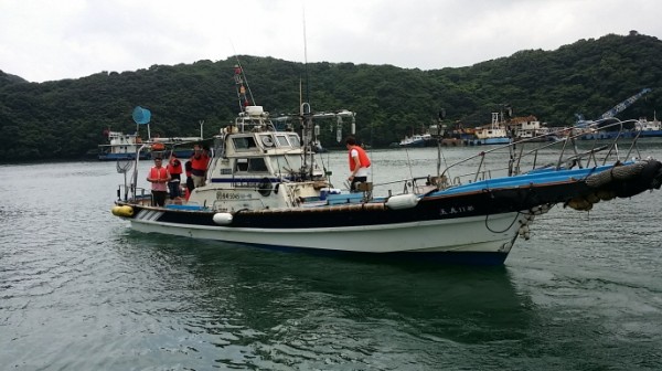 바람이 약간 부는 날씨지만, 많은 고기를 낚아 손맛을 볼 수 있기를 바라며, 떠나가는 배를 향해 손을 흔듭니다.