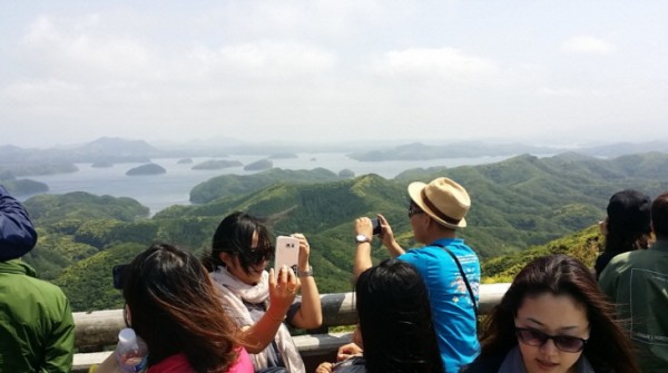 관광을 선택한 분들을 모시고는 아소만을 조망할 수 있는 에보시다케 전망대에 들러, 바다위의 정원같이 아름다운 경관을 만끽하고, 일본에서 가장 오래된 해궁신사인 와타즈미 신사는, 용궁전설에 가미된 신화에 신사에서 바다로 이어지는 5개의 도리이의 모습이 이곳이 신화의 마을임을 알 수 있습니다.