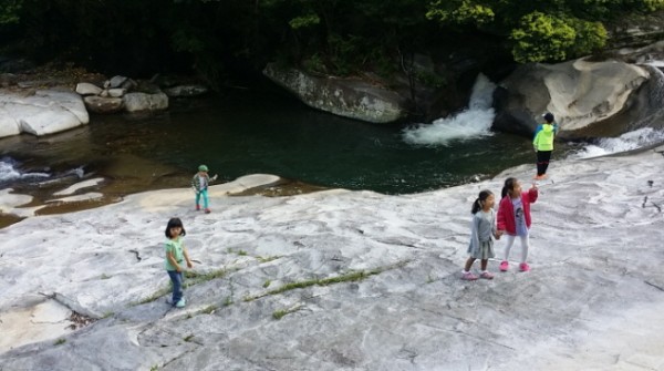 길옆으로 흐르는 계곡에는 작은 물고기도 많아 아이들이 신기해 합니다.