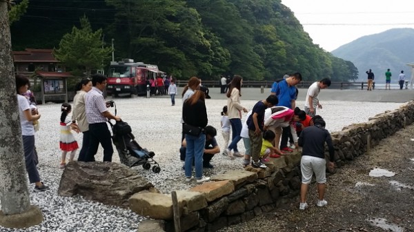 나머지 분들을 모시고, 몽고격전지, 코모다하마 신사와 대마도만의 특이한 건축물, '이시야네'가 있는 시이네를 방문합니다.