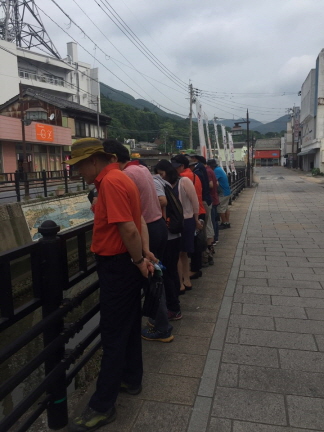 시원한 계곡과 자연, 다리, 산.. 화강암에 누워 낮잠도 주무시고 발도 담그고 목도 씻으며 더위를 날리곤 저희는 일본의 대표 음식 초밥과 우동을 먹은 후 대마도 여행의 아쉼움을 뒤로 한 채 이즈하라 터미널로 향합니다.