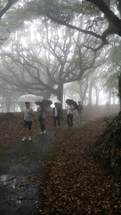 안개가 자욱한 가미자카 전망대의 숲길은 몽환적인 분위기를 자아냅니다.