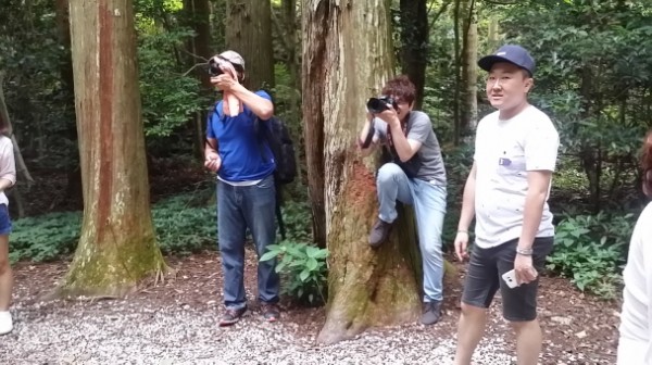 초록의 숲을 배경으로해서 미모의 회장님을 모델삼아 다들 카메라 샷을 누릅니다.