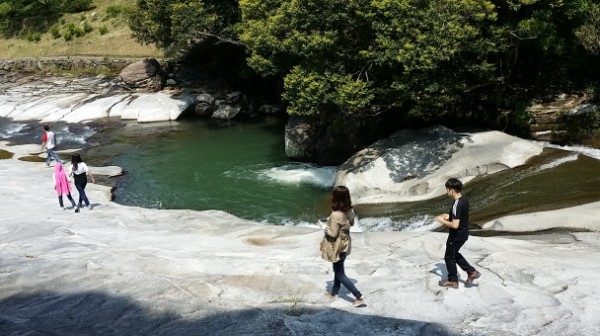 아유모도시 공원으로 이동하여 화강암 계곡에서 사진을 찍기도 하고, 산책로를 걸으며 대마도의 아름다운 자연을 만끽합니다.